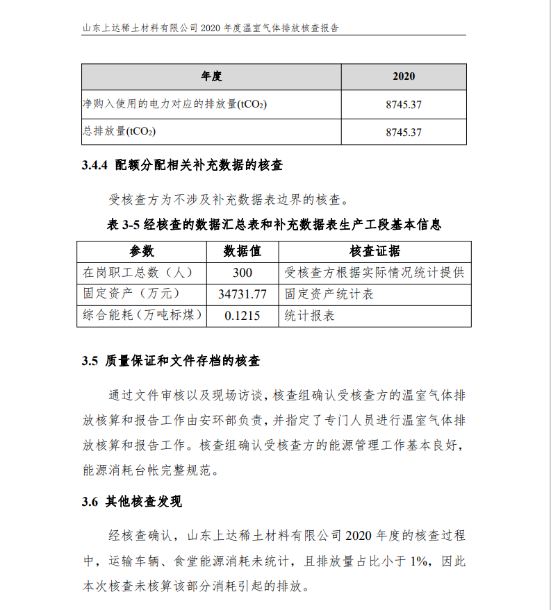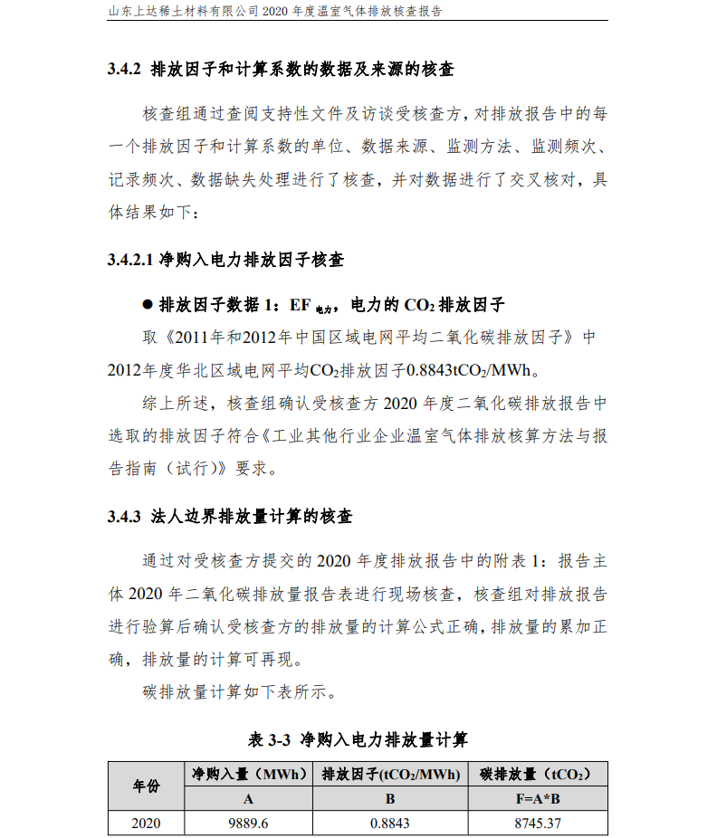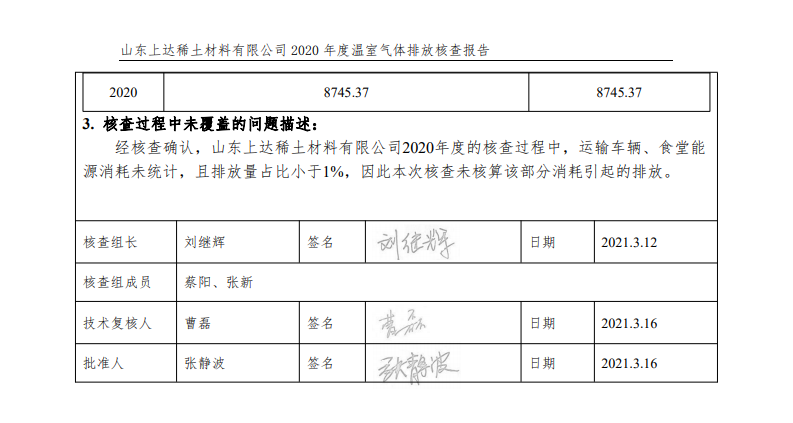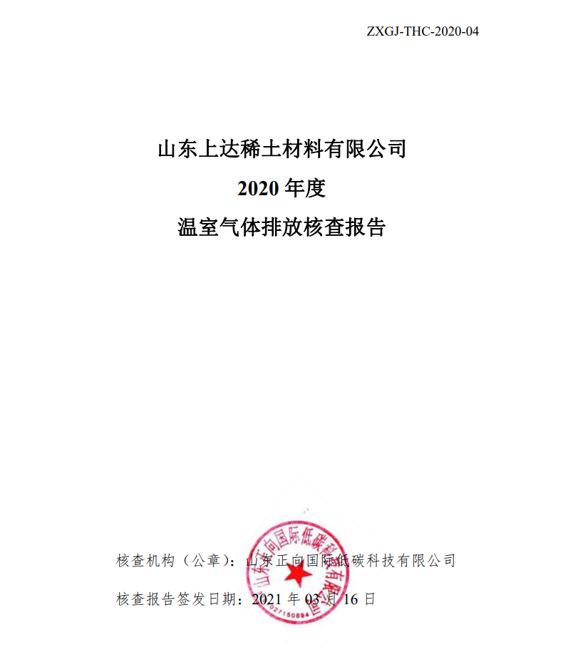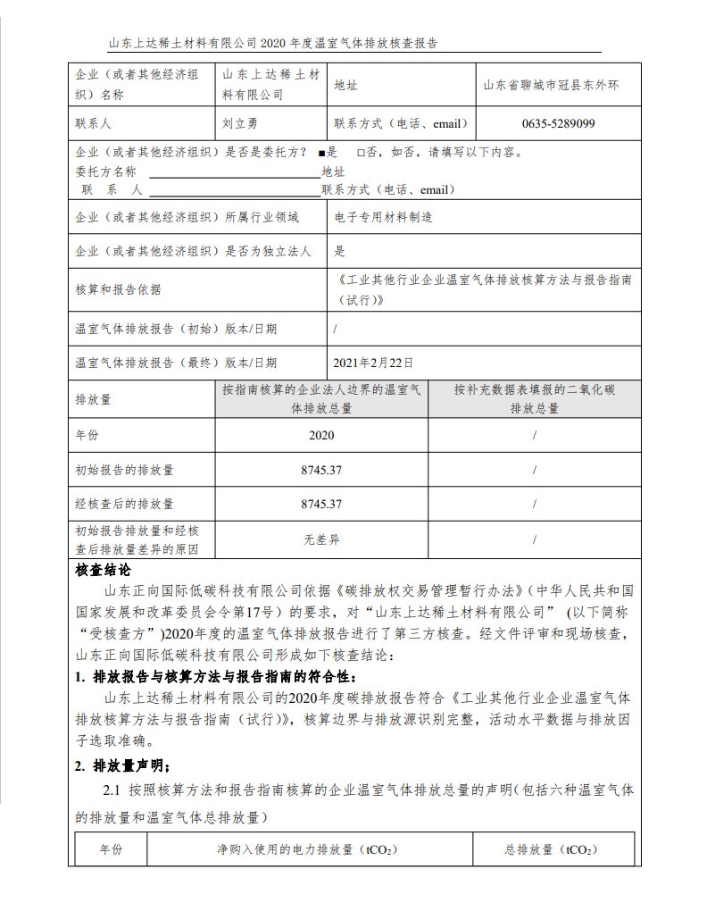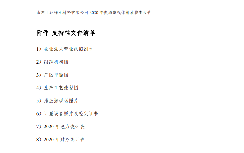 附件:山東上達(dá)稀土材料有限公司2020年度溫室氣體排放核查報告