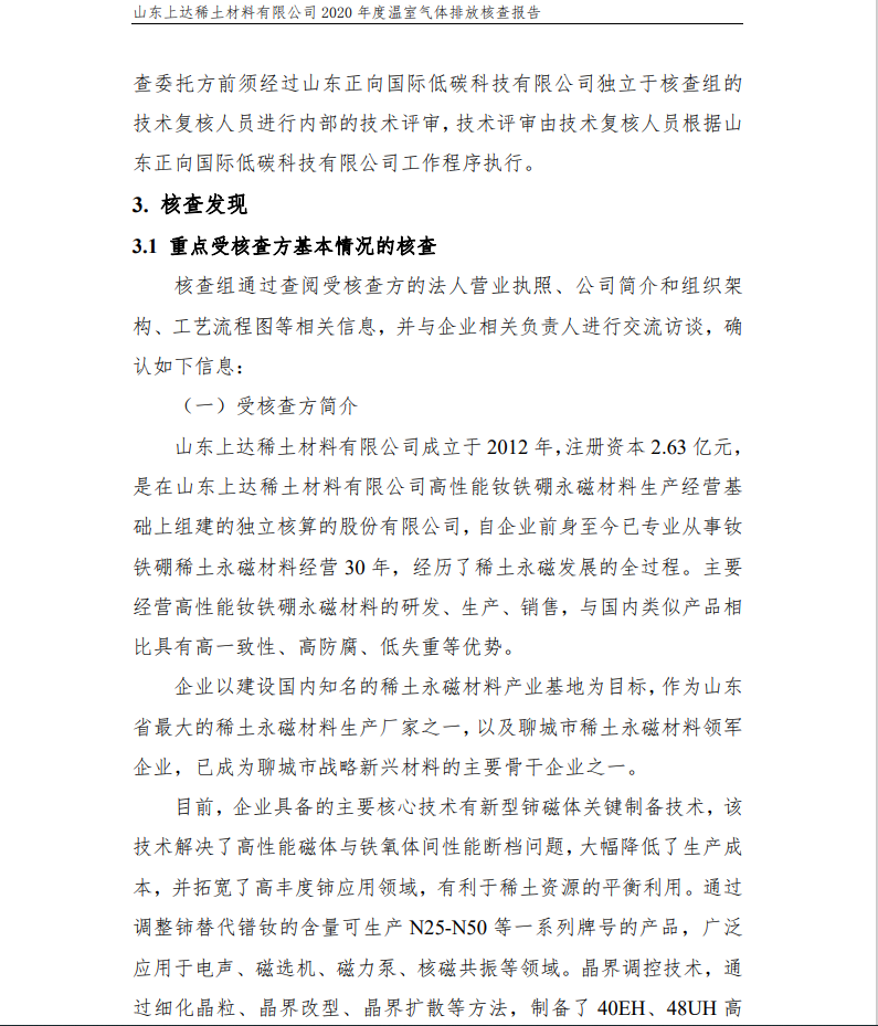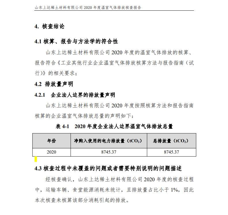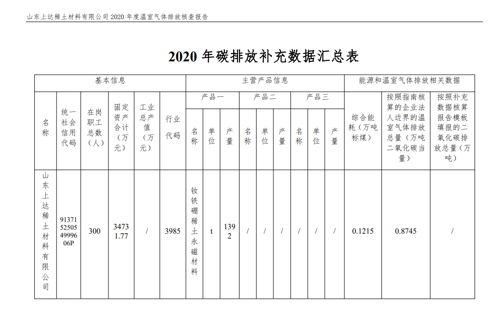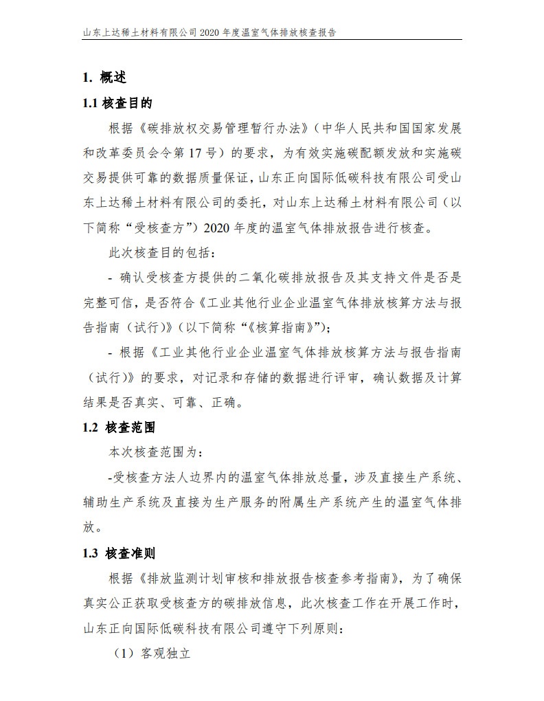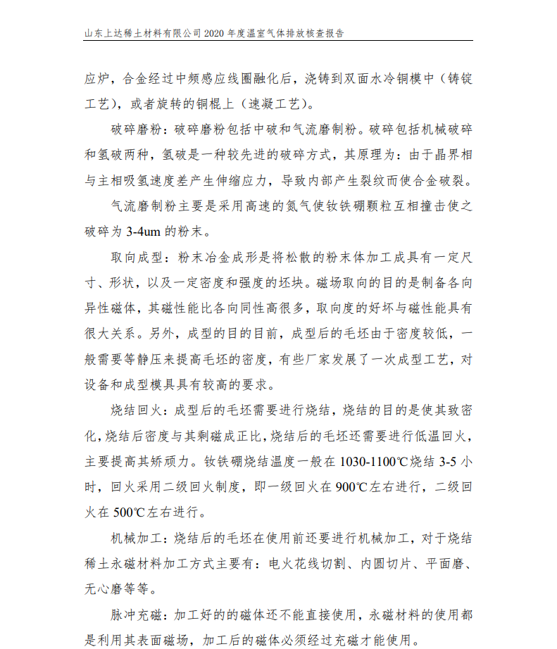 附件:山東上達(dá)稀土材料有限公司2020年度溫室氣體排放核查報告